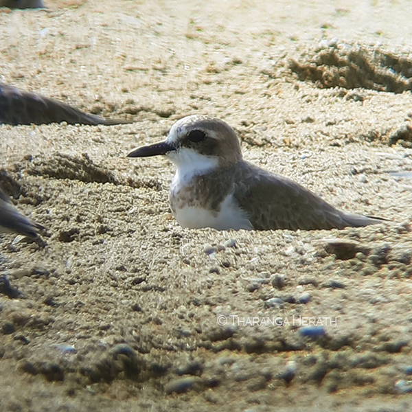 This year (2021) too at least three nests with birds sitting in each were seen by me on 16th April. At that time fields were abandoned temporily after the paddy harvest was taken, hence a suitable habitat had been created for the BWSs to breed. In my next visit with Tharu on 26th April, the fields were partially ploughed to cultivate the next season. Soon I noticed an active nest very unusually in the middle of a ploughed field and I shared my view with my daughter that I believe that the nest would have been relocated by farmers. Sadly the other nests have gone missing. In between this and the last visit a heavy overnight rain occurred that may have washed the other nests that could have affected by ploughing too. I observed the remaining nest from a distance through a fieldscope and captured several images by digi-scoping. In a moment when the incubating bird stood up to change its sitting position, I managed to see at least 3 pinkish eggs heavily speckled with brown.